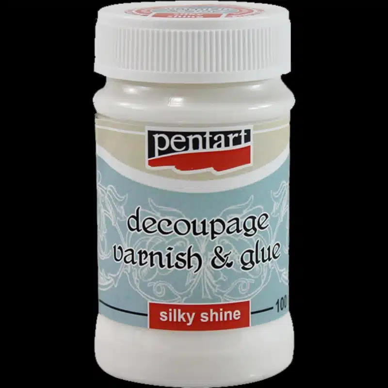 La Colle et Vernis Découpage Satiné (Silky Shine) Pentart est également disponible sur la boutique dans la finiton mate (Matte).