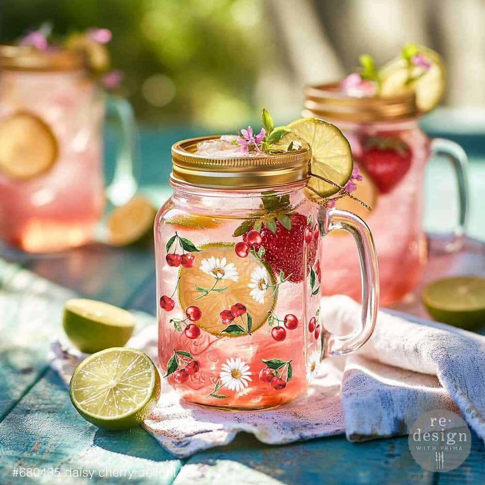 Le transfert Luxe Daisy Cherry Delight, vous offre, bien avant la saison, de délicieuses cerises.