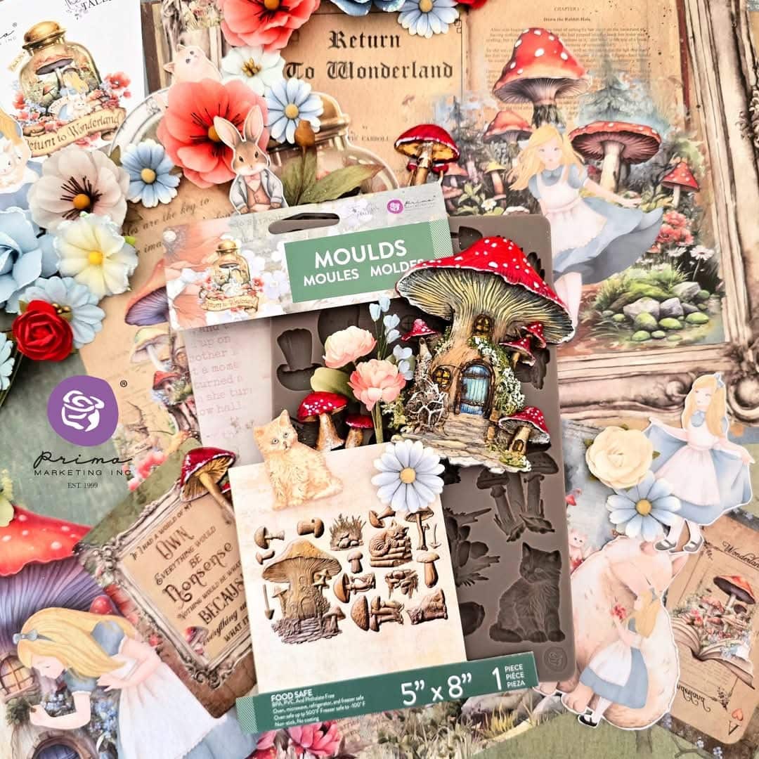 Avec ce moule et ses 16 motifs magnifiquement détaillés, qui vont d’une charmante maison champignon aux espiègles petits chats dont un fait la sieste, en passant par les groupes de délicats champignons, Prima Marketing vous fait pénétrer au coeur de la forêt enchantés du Pays des Merveilles.