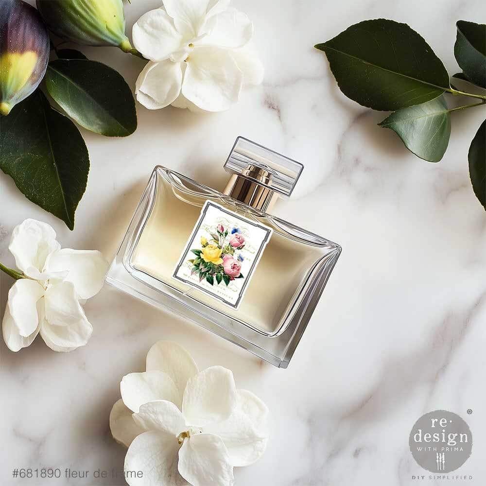Le decor transfert Luxe Fleur De Frame de Redesign with Prima est une décalcomanie décorative de grande qualité qui présente la particularité d’une texture en relief.
