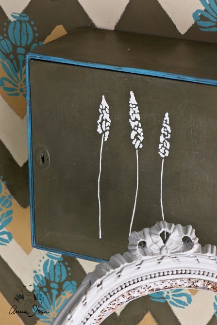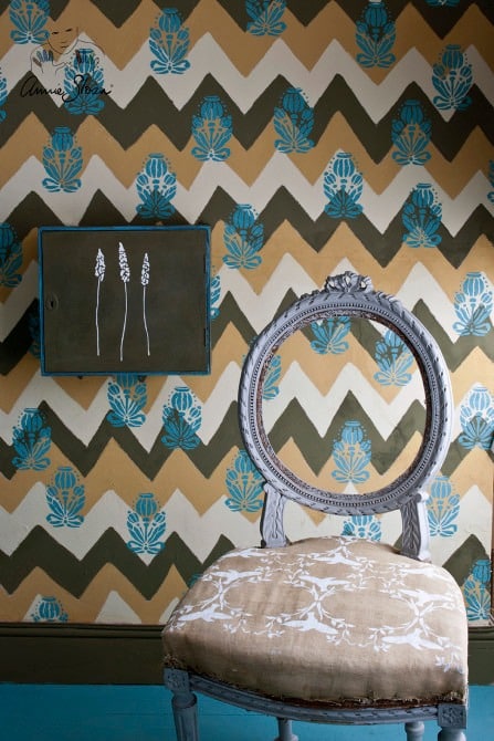 Vous pouvez utiliser la peinture Annie Sloan, Dixie Belle ou tout autre peinture, des cires décor métallisées, des crayons à l’huile,…