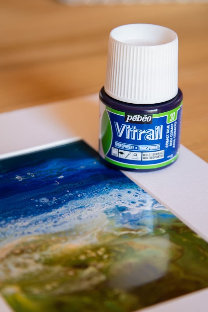 La Peinture Vitrail Pébéo peut également être utilisée pour colorer la Résine Crystal Gédéo Pébéo.