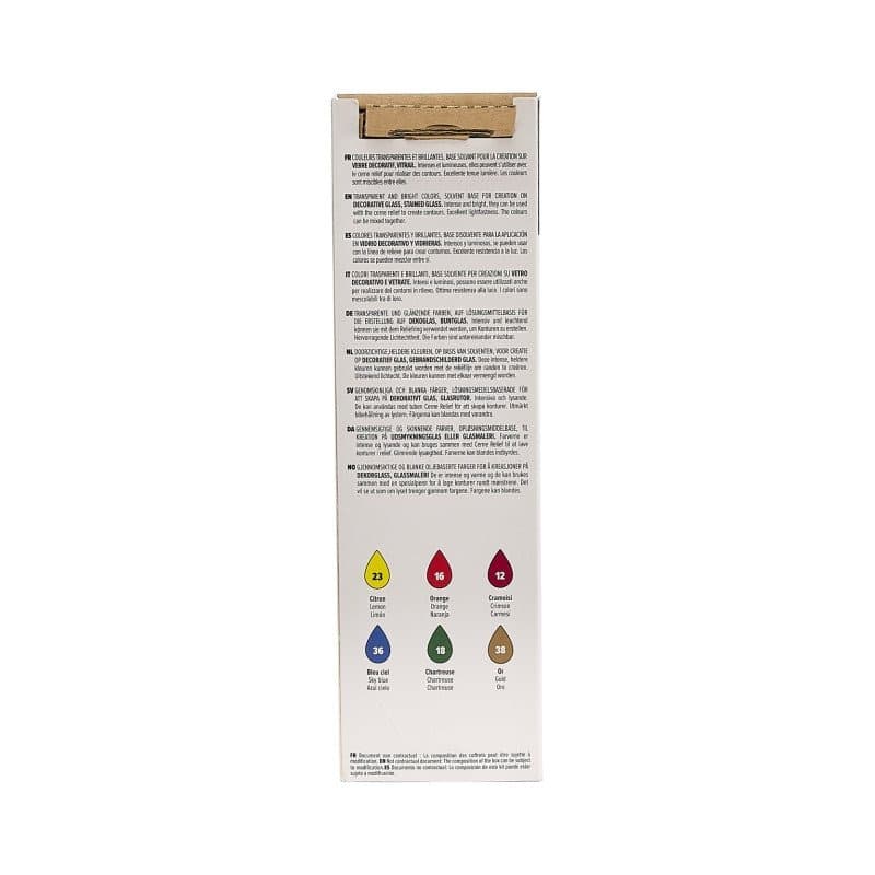 Chacun des flacons du coffret contient 20 ml de Peinture Vitrail.