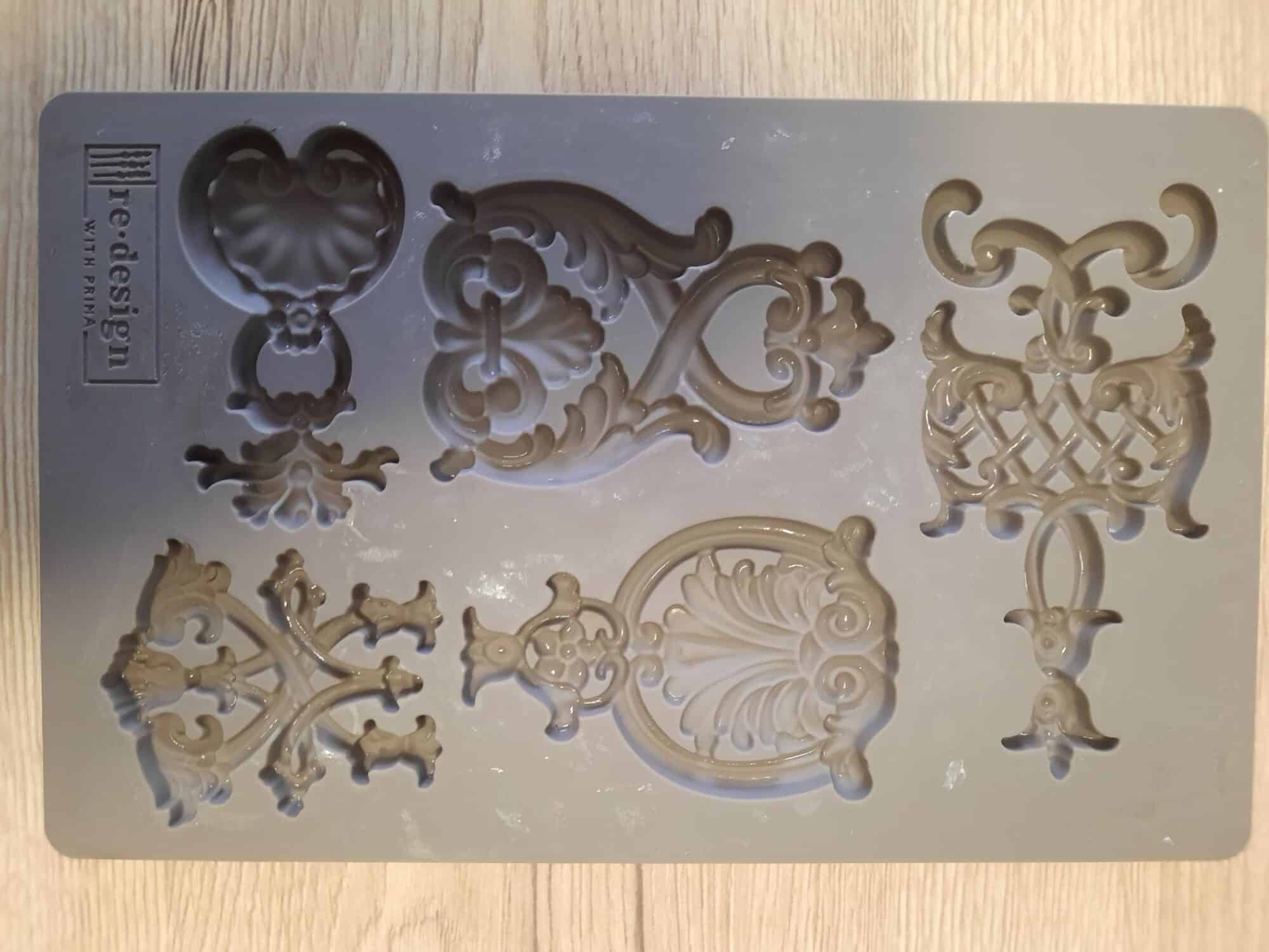Il s’utilise avec de la pâte auto-durcissante, du plâtre, de la résine … pour la décoration de meubles, objets divers …