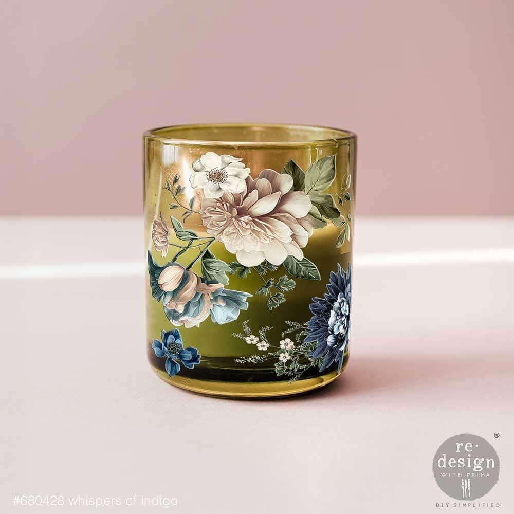 Le decor transfert Luxe Whispers of Indigo de Redesign with Prima est une décalcomanie décorative de grande qualité qui présente la particularité d’une texture en relief.