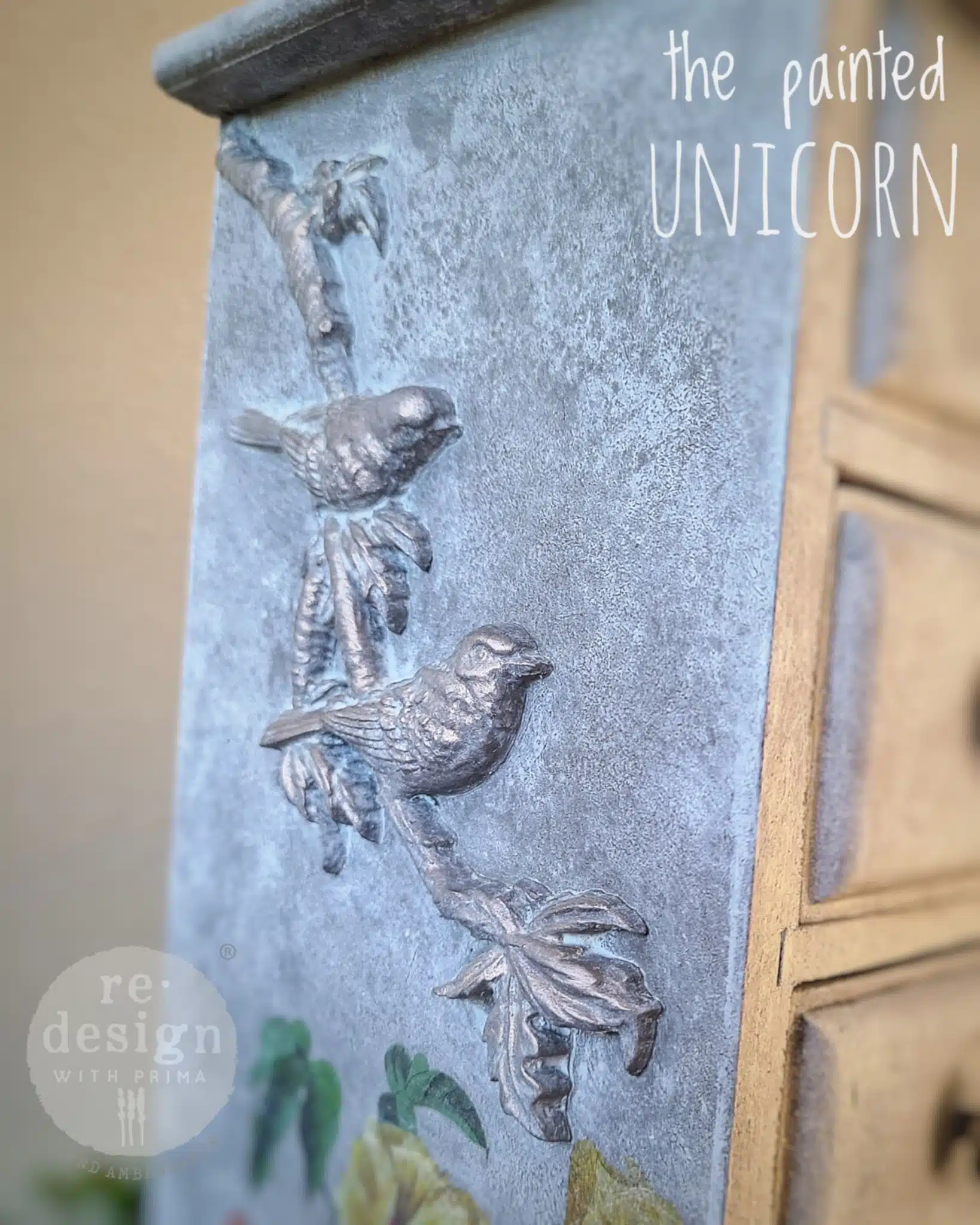Si vous aimez les oiseaux, n’hésitez pas à combiner ce moule avec le grand transfert Chirping Charm ou le Middy Tansfert Blue Nest Blooms de cette même collection.